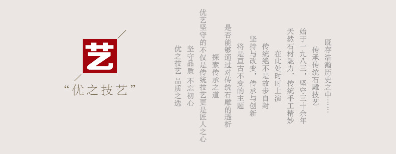 曲陽縣優(yōu)藝園林雕塑有限公司是一家致力于城市雕塑及園林工程雕塑創(chuàng)意、設(shè)計(jì)、制作、安裝為一體的專業(yè)性雕塑工程公司。公司坐落于全國著名的雕刻之鄉(xiāng)——河北省保定市曲陽縣,為適應(yīng)日益增長的客戶需求及高標(biāo)準(zhǔn)的工程定制項(xiàng)目,多位志同道合的傳統(tǒng)手工藝人合資組建本公司。