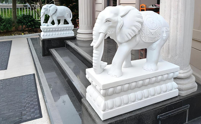 石雕大象自古被視為祥瑞之獸,其“鎮(zhèn)宅辟邪、守財(cái)納?!钡南笳饕饬x深入人心。優(yōu)藝園林雕塑團(tuán)隊(duì)精選優(yōu)質(zhì)漢白玉、花崗巖等石材,通過手工雕刻與機(jī)械精磨結(jié)合,塑造出形態(tài)逼真、細(xì)節(jié)飽滿的大象造型。無論是銀行、企業(yè)門口的威嚴(yán)守護(hù)象,還是別墅庭院中的溫馨家庭象,皆可依據(jù)客戶需求調(diào)整造型比例、裝飾紋樣及底座銘文,完美適配不同場(chǎng)景的文化表達(dá),彰顯尊貴氣質(zhì)。